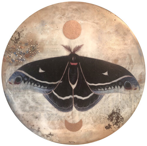 I use my curiosity about these ecological interconnections to create paintings and installations that draw attention to our environmental crises. Through images of bees, honeycombs, dragonflies, moths, and other flora and fauna, I put my encaustic materials to emphatic use—these pieces not only portray a threatened world, but they also call attention to the fact that the very medium of encaustic cannot exist without the survival of bees. By portraying the cycles of life, death, and impermanence in my work, I hope to raise awareness about environmental issues, inviting my audience to see nature not as a backdrop but as a vital element of our existence.