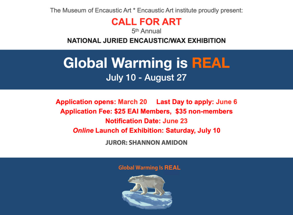 The juror will make her selections based on the interpretation of the Global Warming is REAL theme, as well as the quality of the submitted artwork.