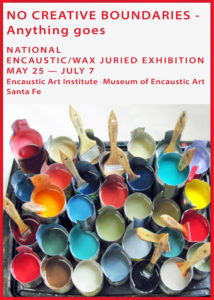 “No Creative Boundaries” is a no-theme exhibition, with a twist. We want a wonderful diverse exhibition with encaustic/wax artists delving into the creative process with the idea of “new territory”. It is sometimes easy to stay with what you know creatively and are comfortable with, whether it is technique or subject matter. It is also easy to look in your stockpile of art to find something for this show. If you are an EAI Member, you may also be wanting to enter the piece you have with us that is already hanging in the EAI Member Gallery. All of the above is good too, anything goes! However, we encourage you to enter something that is your latest work and even a special new work just for this exhibition.
