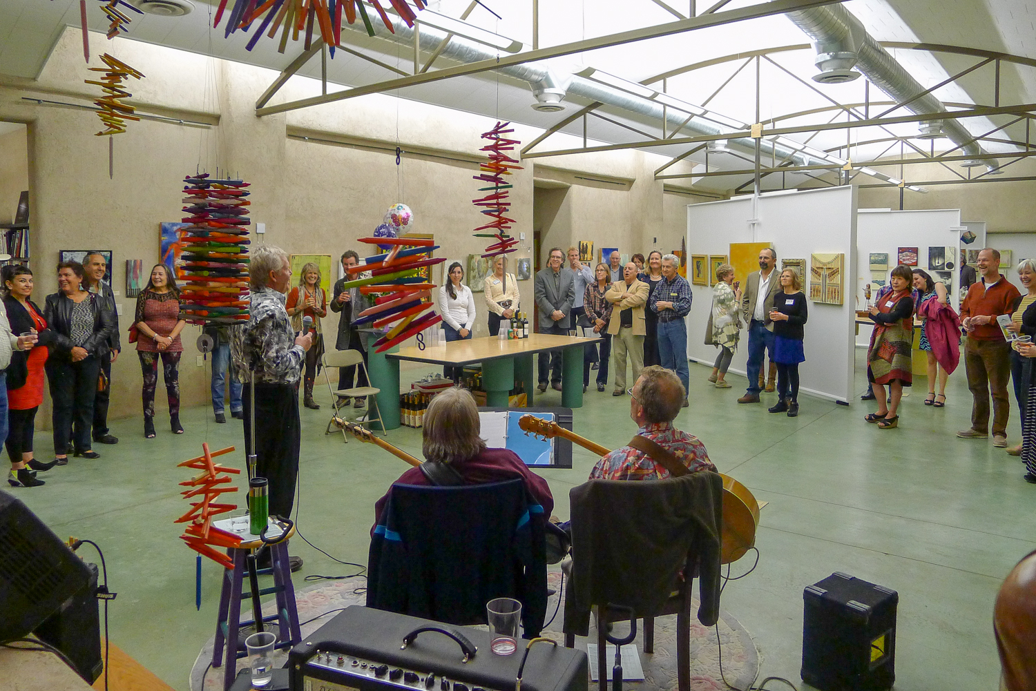 The Opening of EAI’s move to Santa Fe and celebration of EAI’s 10th Anniversary was a huge success. We had media attendance from all factions of Santa Fe, with a head count of over 150 people throughout the night. The food was fantastic and the band added the perfect touch to the festivities. We also sold 9 paintings that evening. The artists names are listed below. The prices sold ranged from $125 to $700. Several pieces are being considered.