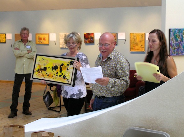 The Sunday Afternoon was a departure from the Saturday evening we had done before, and it was a hit. Sherry Ikeda did monotype demonstrations, and we had a wonderful poetry reading by Stuart Hall. The raffle and live auction items this year were fantastic and pulled a lot of players into the fun. We sold more paintings this year, than in years past through the silent and live auction.