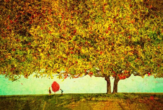 “Leaves of Joy”, encaustic/digital print, 18 x 18 inches