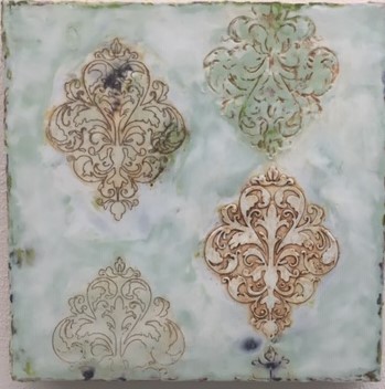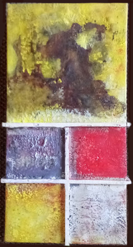 “Relievos”, encaustic, 12 x 12 inches
