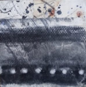 “Coastal Journey”, encaustic, dry pigment, image transfer, 6 x 6 inches