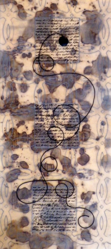 “A List of PossibiliTeas”, encaustic mixed media, 22 x 10 inches