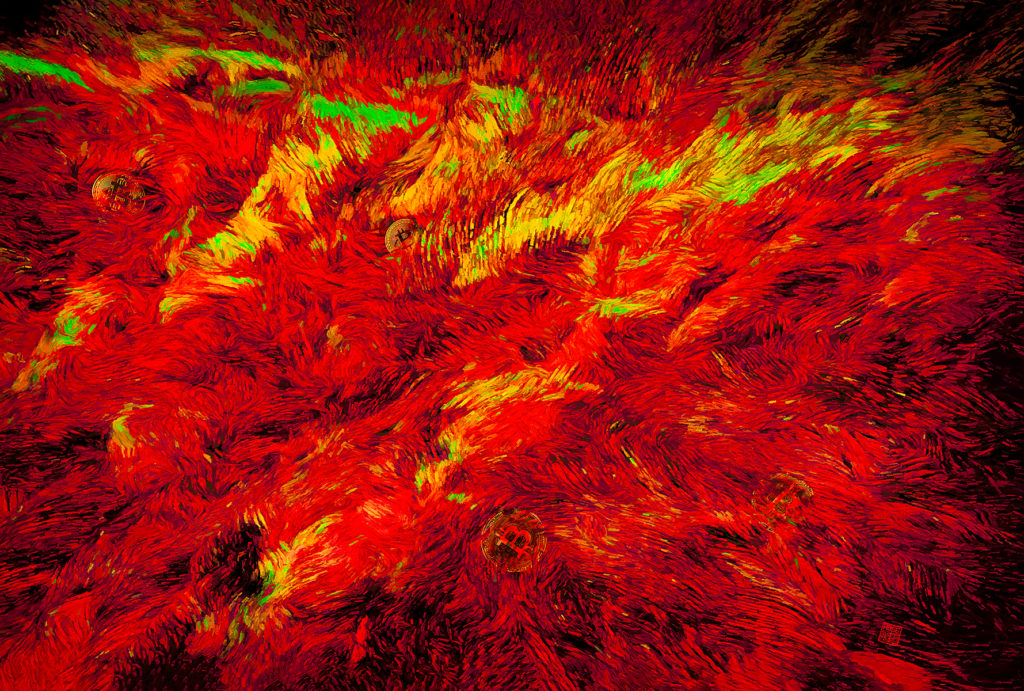 I submit: Bitcoin: Its Carbon Footprint Exceeds Entire Nations‘, showing Bitcoins engulfed in flames, as in so many wildfires in the American West.