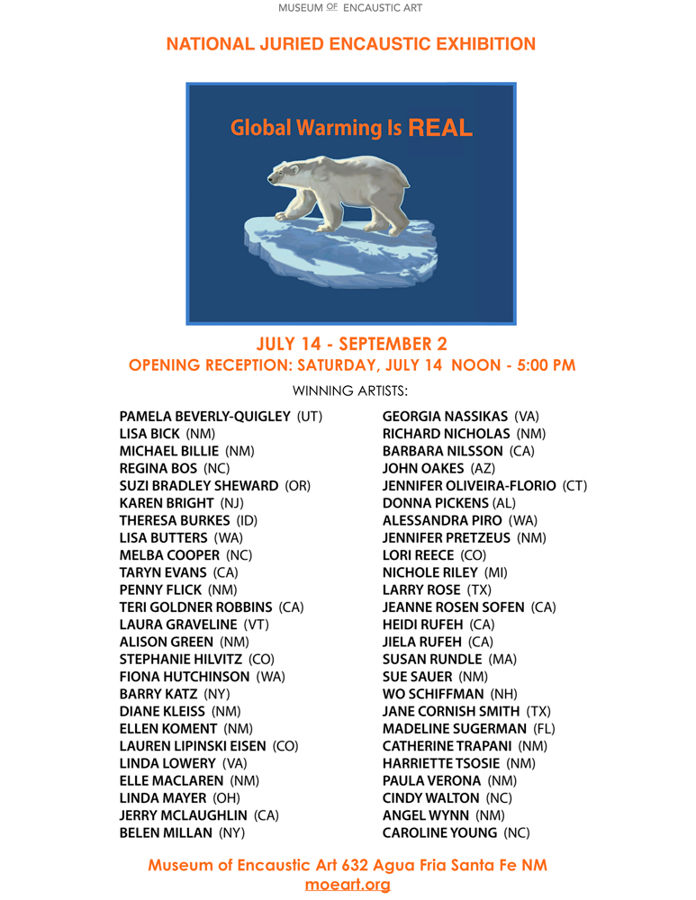 Augustine Romero, the juror for the 2nd Annual Global Warming is REAL Exhibition, has made his selections. The notification emails have been sent and the results have been posted below. Congratulations to the following artists who have had pieces juried into this exciting exhibit: