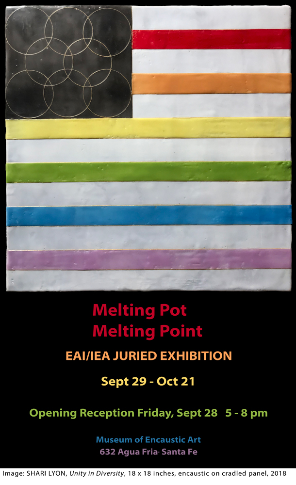 In conjunction with EXPO 2018, EAI and IEA are collaborating for the second time in holding a retreat for their members, click HERE for more info on the FLUX: Encaustic Retreat. In addition, EAI and IEA are jointly sponsoring a Juried Exhibition: Melting Pot/Melting Point, which will be held in Santa Fe, NM during the retreat and will be shown at the EAI Gallery.