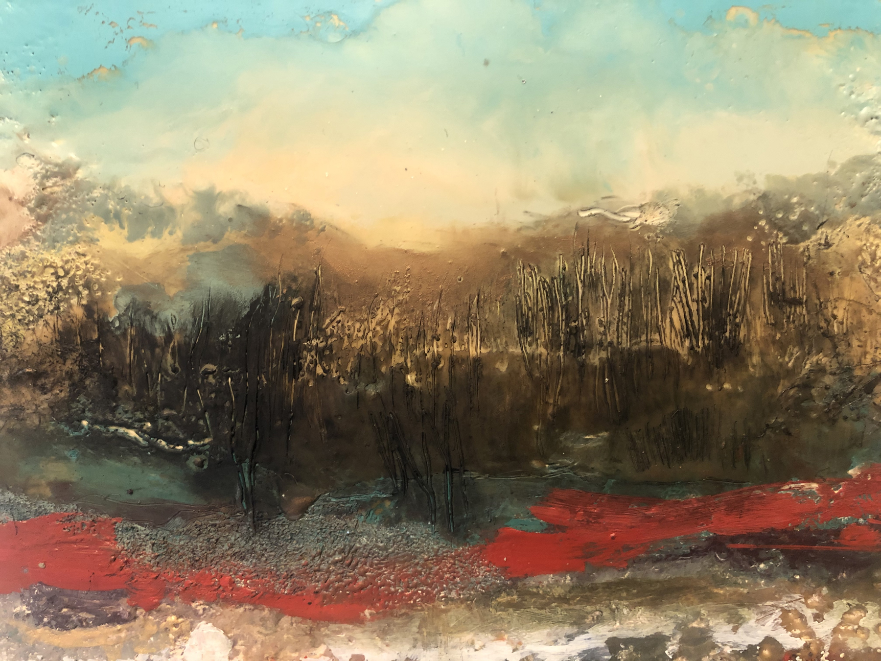 A Red River Runs Through It, encaustic on cradled birchwood panel, 8 x 12 inches