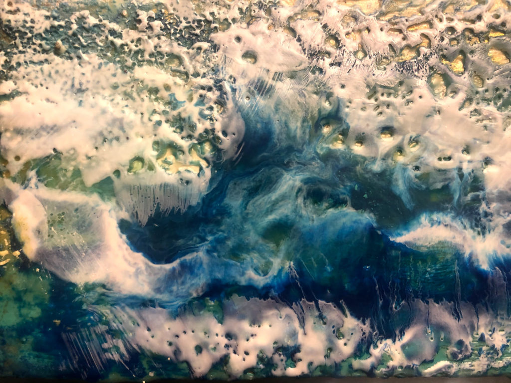 Golden Waves, encaustic on cradled birchwood panel, 11 x 17 inches