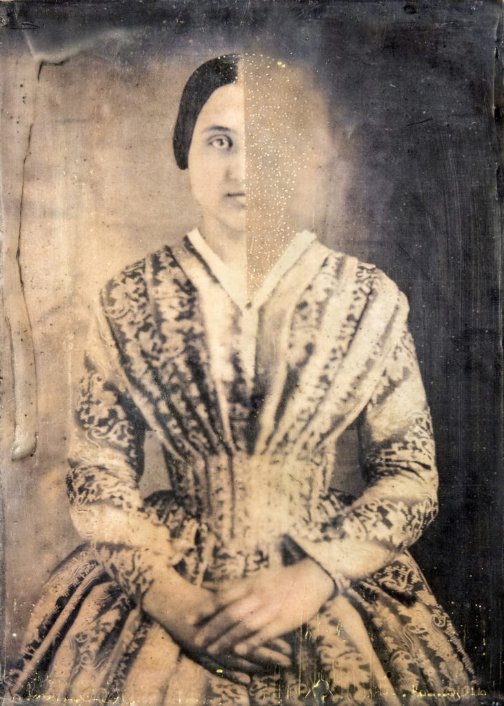 Matriarch, encaustic, Xerograph, oil pigments, on cradled panel, 7 x 5 inches