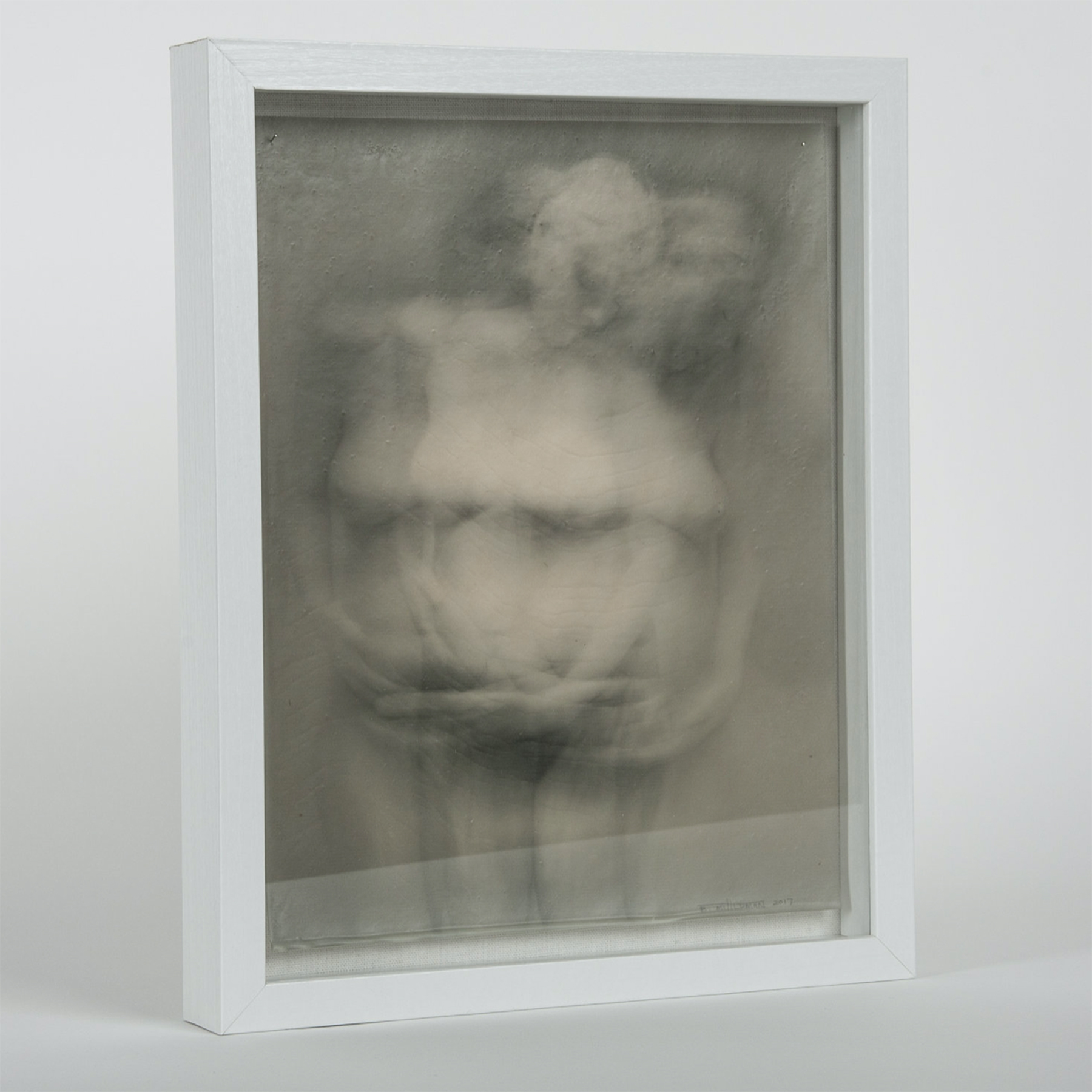 Between Us #5, pigmented print soaked in pigmented wax and damar resin, 15 x 12 inches, framed with glass