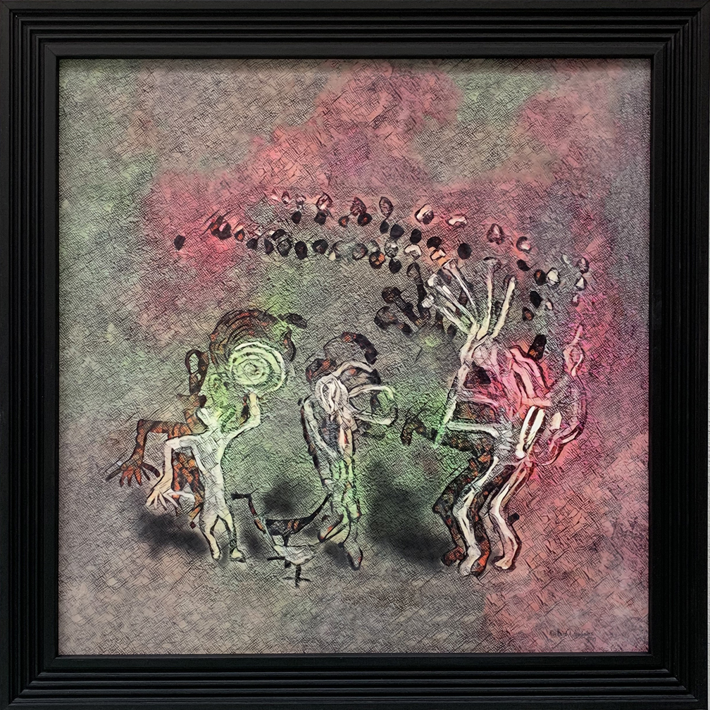 Ancient Music, encaustic, photo montage, 28 x 28 inches, framed