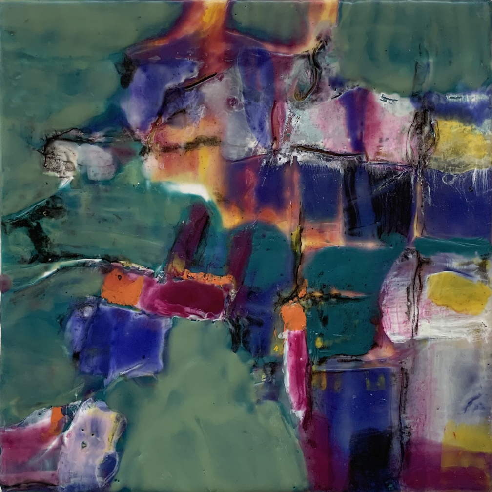 New Year’s in Nan Chai, encaustic, 10 x 10 inches