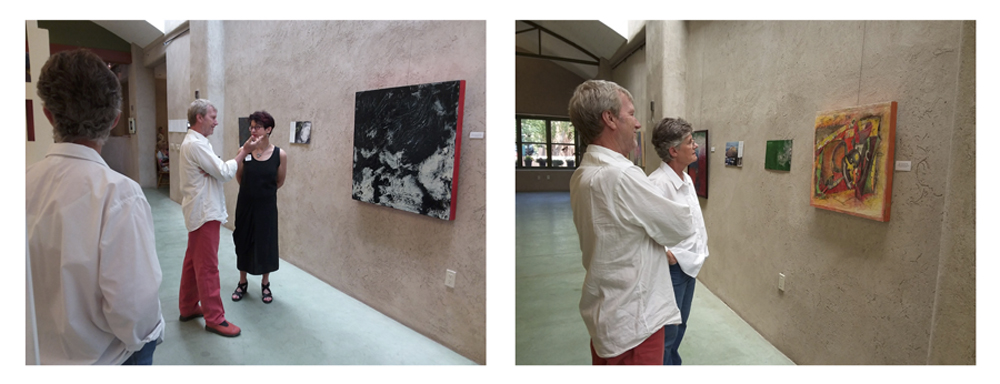 We had two sales that day, one from the exhibition – Kate Snow with her piece Encaustic Iceberg 004. Kate’s piece was also selected by the Albuquerque Journal North to be featured with their wonderful article in the Friday paper. And one from the member’s side of the gallery, Lauri Borer.