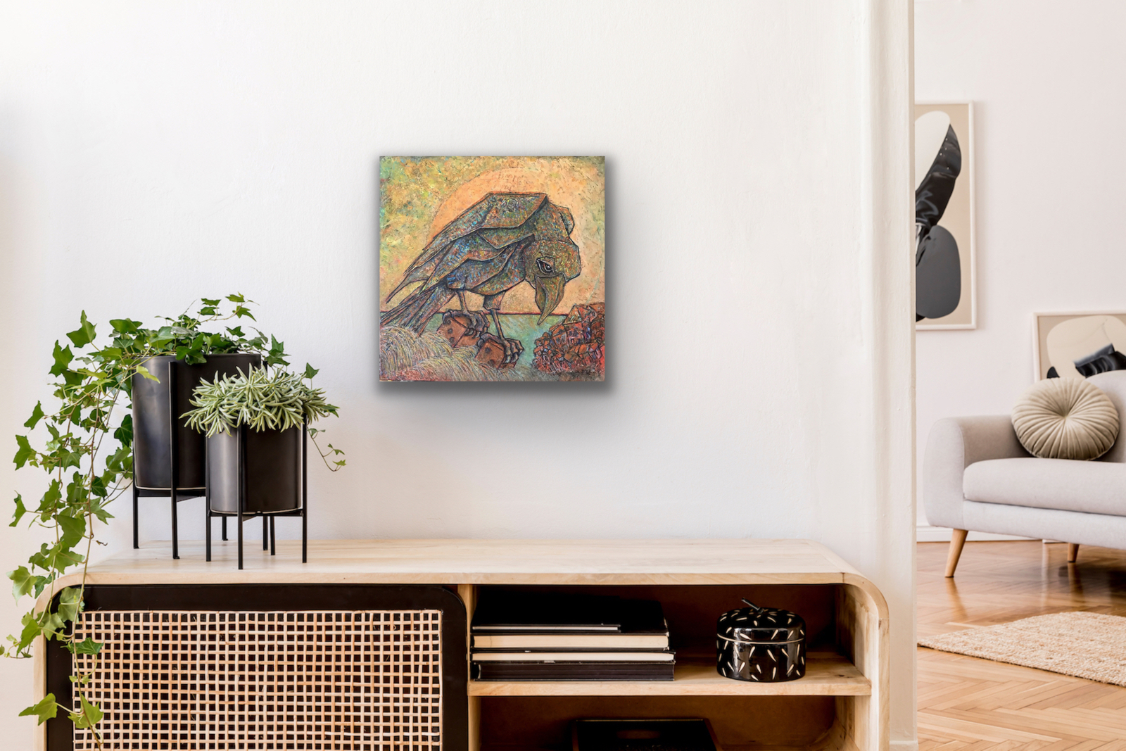 The images below offer two views of A Toss of the Dice in situ to help to visualize this piece in a home setting.