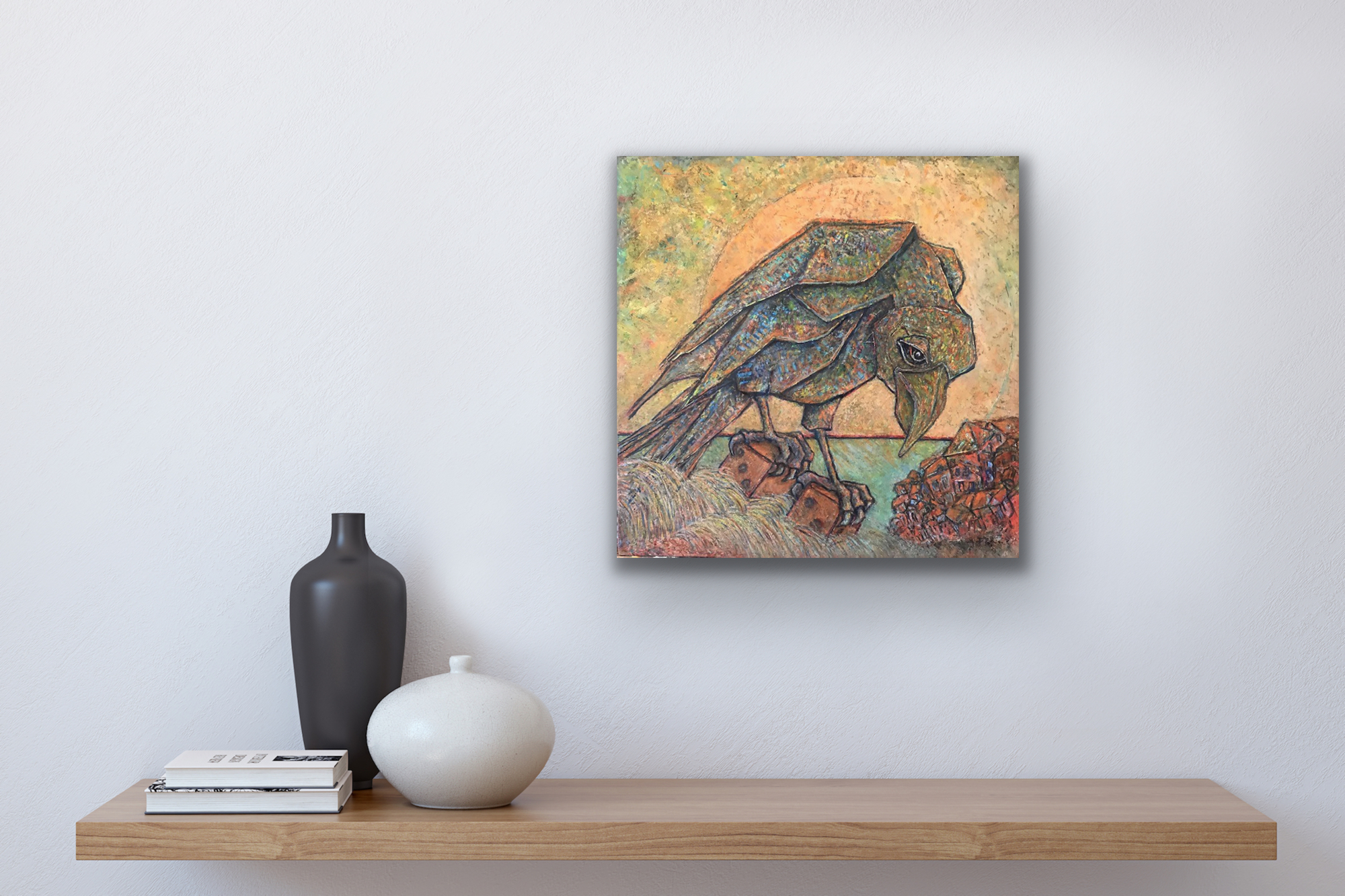 Representing the turmoil of the last four years: the world’s free flying iconic bird is weighted down in the quagmire of a crashing political system; the fumbled Pandemic; and cuts to the Environmental Agencies. Life was just a daily toss of the dice.