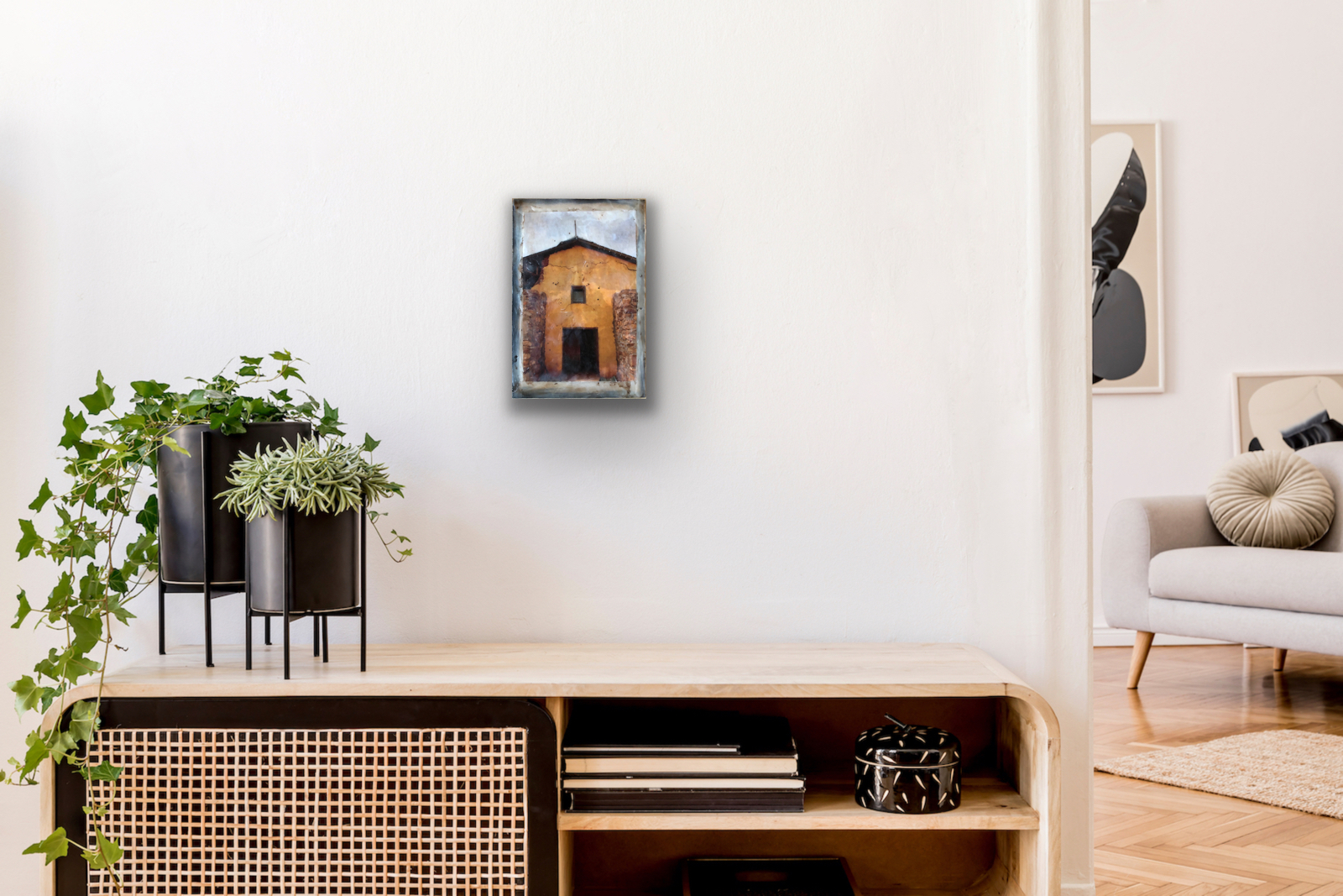 The images below offer two views of Capilla, Colonias, New Mexico in situ to help to visualize this piece in a home setting.