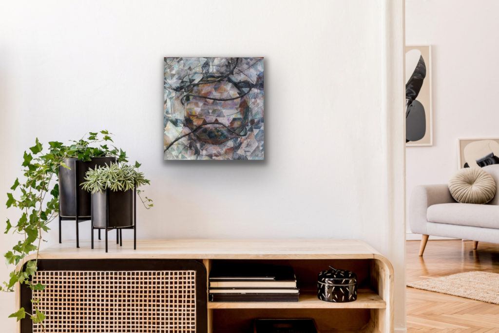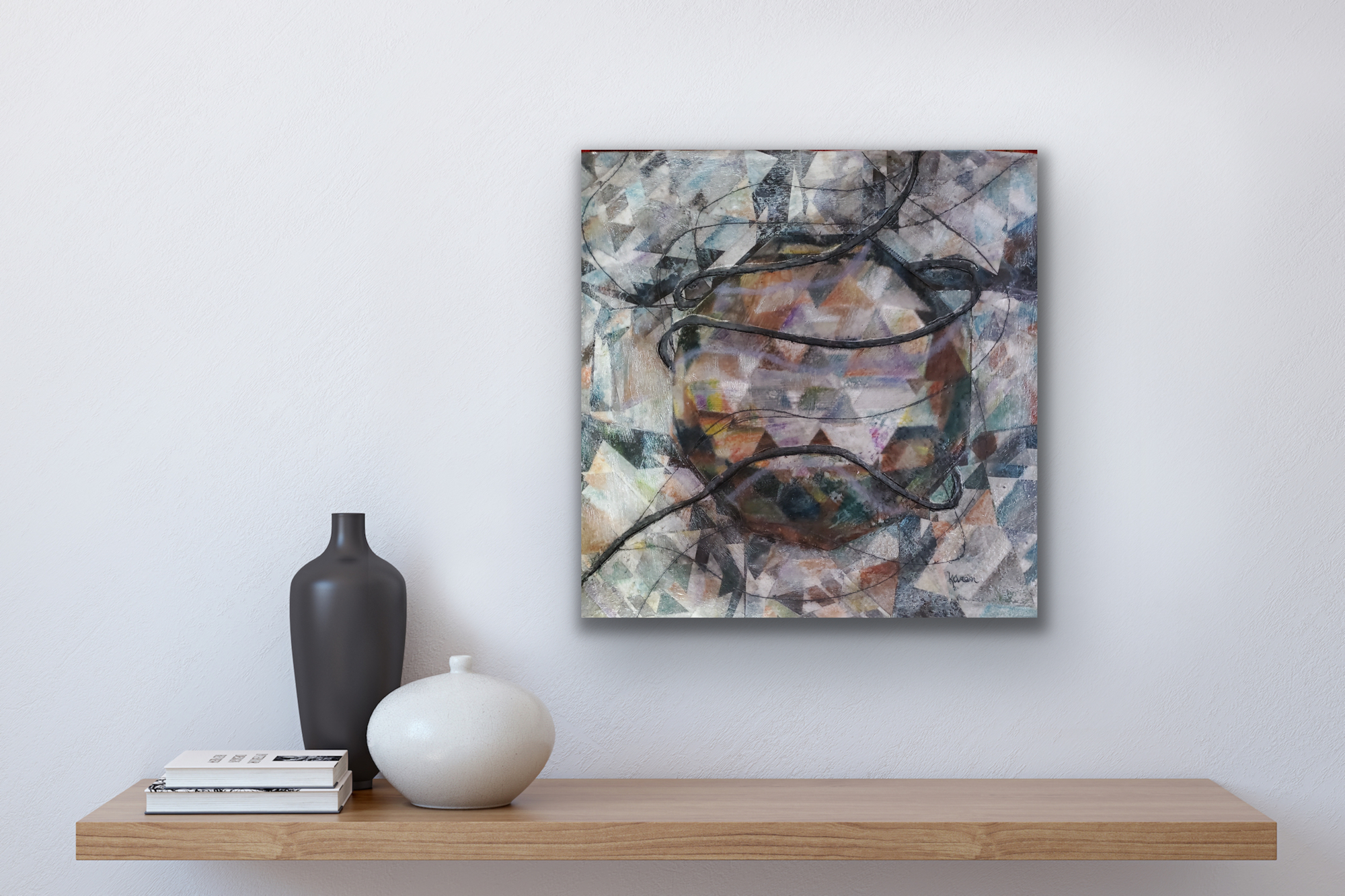 Crystal View, encaustic, photo, collage on encausticboard, 12 x 12 inches