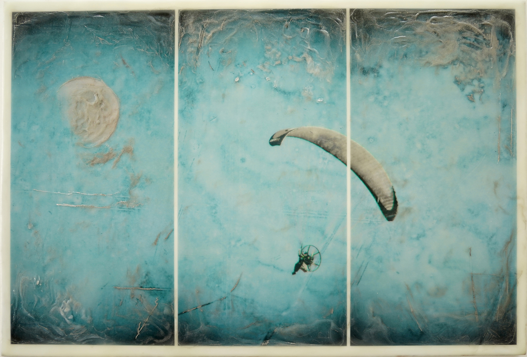 Moon Flight, photo encaustic on MDF board with pigment sticks, 8.5 x 12.5 inches