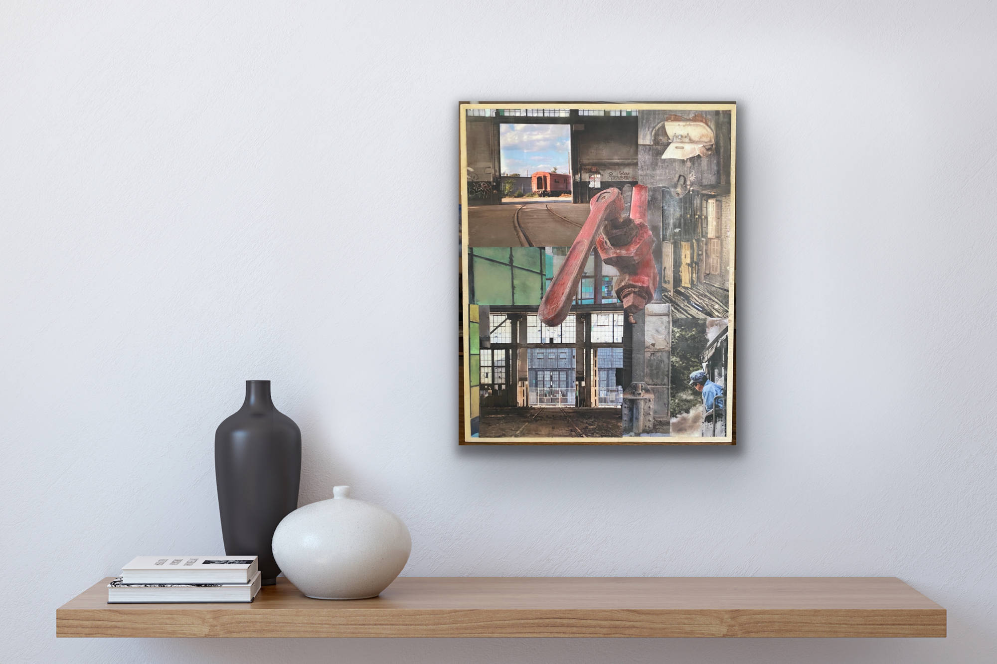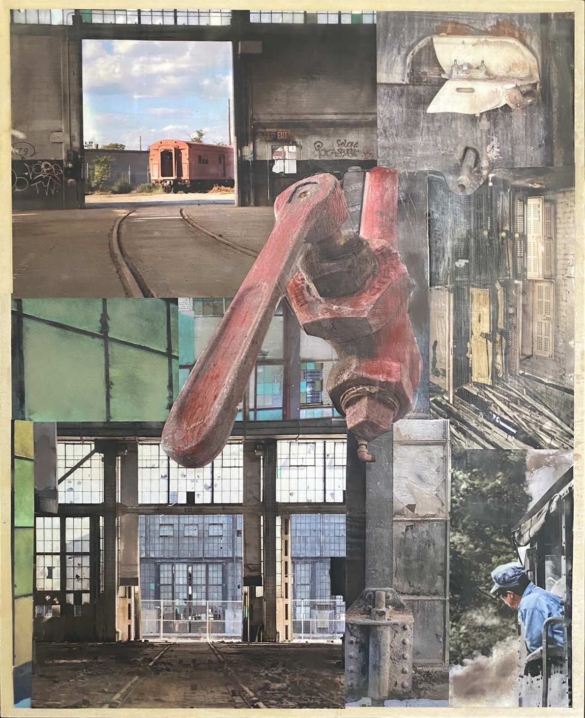 Looking Forward Looking Back, photo encaustic collage on board, 20 x 16 inches
