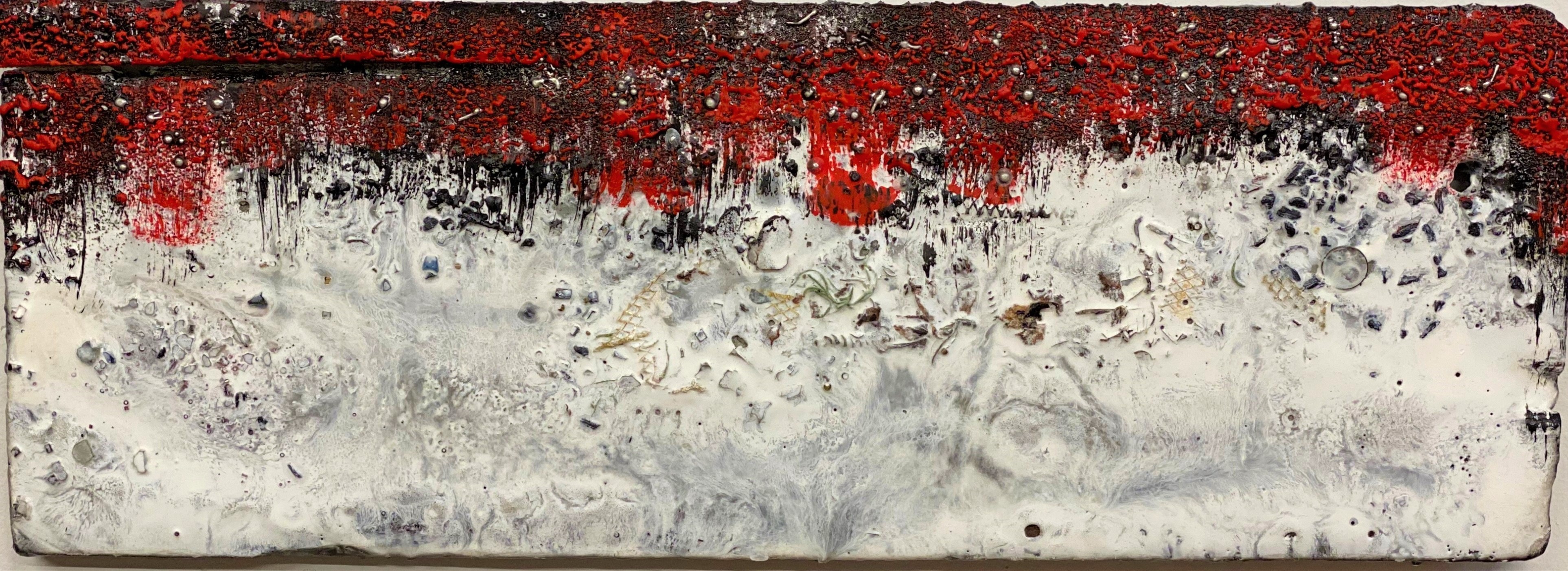 Cryosphere, encaustic paint, pigment sticks, pan pastels, crushed glass, solder, sticks, repurposed cy