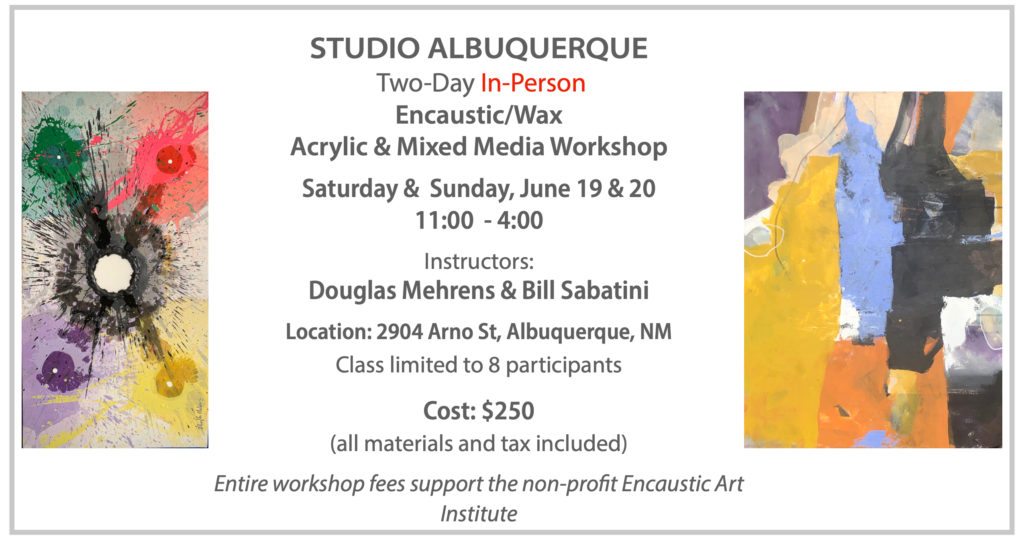 Please note: due to pandemic circumstances, the Encaustic Art Institute is taking encaustic/wax workshops online and also shifting in-person workshops to instructors’ studios.